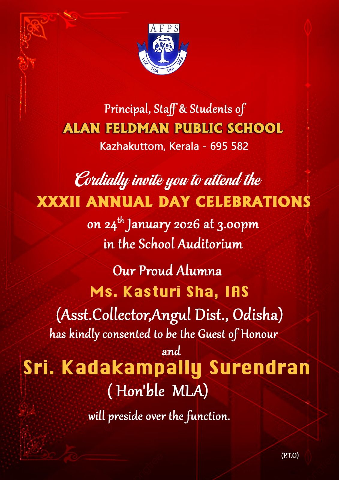 Alan Feldman Public School was founded by late Mr. Alan Simon Feldman a British Educationalist and late Mr. P. Purushothaman, an eminent educationalist (Former Principal, Asan Memorial Senior Secondary School, Chennai) in 1994 at Mukkolakkal, Kulathoor. It was shifted to its permanent site adjacent to the Sainik School Campus, Kazhakuttom in 1995.